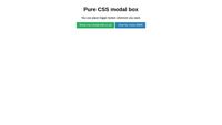 <h1>Pure CSS modal box</h1> <div> <p>You can place trigger button wherever you want.</p> <p> <label class="btn" for="modal-1">Show me modal with a cat</label> <label class="btn btn--blue" for="modal-2">Click for more AWW</label> </p> </div> <input class="modal-state" id="modal-1" type="checkbox" /> <div class="modal"> <label class="modal__bg" for="modal-1"></label> <div class="modal__inner"> <label class="modal__close" for="modal-1"></label> <h2>Caaaats FTW!</h2> <p><img src="https://i.imgur.com/HnrkBwB.gif" alt="" />Aliquam in sagittis nulla.
