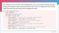 Therefore, if you want to "speed up" your loop, you can reduce the pyautogui.PAUSE value. However, keep in mind, this will prevent you from having time to activate the failsafe if you need it.