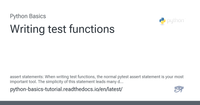 However, a failing assert will end the individual test. That's because once an exception is raised outside of a try...except block, Python unwinds the current function frame, and there is no going back on that.