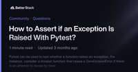 July 6, 2023 - Or fail if it doesn’t raise an exception. ... To run the tests, simply run pytest in your terminal or you can provide the path to the file as an argument. Use -v for verbose logging. If you like, you can use the following simple block to assert the exception ... In these examples, we have captured the output in the excinfo object which allows us to assert the actual exception message too. So the following block of code, not only checks that a FileNotFoundError is raised but also asserts our expected message — File non_existent_file.txt not found, which is equally important.