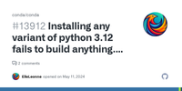 Installing any variant of python 3.12 fails to build anything. "CondaVerificationError" · Issue #13912 · conda/conda