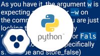 As you have it, the argument w is expecting a value after -w on the command line. If you are just looking to flip a switch by setting a variable True or False, have a look here (specifically store_true and store_false)