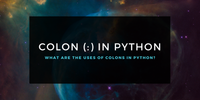 February 22, 2021 - A colon (:) holds a lot of importance in Python. A colon in Python is used for multiple functions including declaring functions, fetching data, array indexing, and more.
