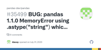 BUG: pandas 1.1.0 MemoryError using .astype("string") which worked using pandas 1.0.5