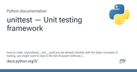 February 23, 2026 - The unittest unit testing framework was originally inspired by JUnit and has a similar flavor as major unit testing frameworks in other languages. It supports test automation, sharing of setup and shutdown code for tests, aggregation of tests into collections, and independence of the tests from the reporting framework.