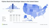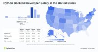 While ZipRecruiter is seeing annual salaries as high as $191,000 and as low as $16,000, the majority of Python Backend salaries currently range between $145,500 (25th percentile) to $167,500 (75th percentile) with top earners (90th percentile) making $184,500 annually across the United States. The average pay range for a Python Backend varies little (about 22000), which suggests that regardless of location, there are not many opportunities for increased pay or advancement, even with several years of experience.