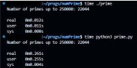 March 15, 2025 - I classify some key differences between C and Python implementation ... Both programs count prime numbers up to 250.000 and print the result, the C version is significantly faster because it is compiled to machine code, yet the Python version is slower because it’s interpreted line by line.