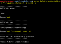 November 20, 2016 - A web application vulnerable to Python code injection allows you to send Python code though the application to the Python interpreter on the target server. If you can execute python, you can likely call operating system commands. If you can run operating system commands, you can read/write files that you have access to, and potentially even launch a remote interactive shell (e.g., nc, Metasploit, Empire).
