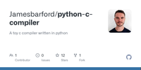 However, there are several caveats here, this is not a complete C compiler, it is missing support for floats, unions, enumerations, bit fields, along with several other smaller inconsistencies. Furthermore, the compiler does not output machine code in ELF files for linking. Instead, it outputs assembly. By default, it is configured to output assembly for an emulator I built specifically for this project to act as a test case (https://github.com/CarterTS/DemoProcessor).