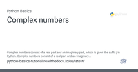 Answer from rob mayoff on Stack OverflowIn python, you can put ‘j’ or ‘J’ after a number to make it imaginary, so you can write complex literals easily: