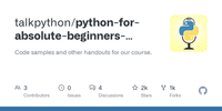GitHub - talkpython/python-for-absolute-beginners-course: Code samples and other handouts for our course. · GitHub