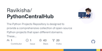 Ravikisha / PythonCentralHub Public · Notifications · You must be signed in to change notification settings · Fork 20 · Star 41 · main · / Copy path · More file actions · More file actions · History · History · 5.38 MB · main · ...