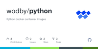 Base image: python · GitHub actions builds · Docker Hub · Supported tags and respective Dockerfile links: 3.14, 3, latest (Dockerfile) 3.13 (Dockerfile) 3.12 (Dockerfile) 3.11 (Dockerfile) 3.10 (Dockerfile) 3.14-dev, 3-dev (Dockerfile) 3.13-dev (Dockerfile) 3.12-dev (Dockerfile) 3.11-dev (Dockerfile) 3.10-dev (Dockerfile) 3.14-dev-macos, 3-dev-macos (Dockerfile) 3.13-dev-macos (Dockerfile) 3.12-dev-macos (Dockerfile) 3.11-dev-macos (Dockerfile) 3.10-dev-macos (Dockerfile) Images with -dev tag have sudo allowed for all commands for wodby user.