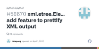 lxml.etree.tostring(answer #2):lxml.etreeis a near-perfect superset of the stdlib etree, so if you're going to use it for pretty-printing, just use it to build the XML in the first place.- Effbot
