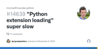 Recently updated my laptop, and after installing VS Code and Python on the new machine, I've noticed that the Python extension takes forever to load any time VS Code is (re)started. I haven't timed it exactly, but probably at least a minute or more, just to load an extension on a 'gaming' laptop with oodles (technical term!) of RAM, disk space, and processor power to spare.
