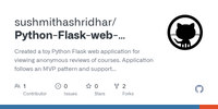 GitHub - sushmithashridhar/Python-Flask-web-application: Created a toy Python Flask web application for viewing anonymous reviews of courses. Application follows an MVP pattern and support two routes/views initially