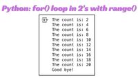 Note: Use xrange in Python 2 instead of range because it is more efficient as it generates an iterable object, and not the whole list.