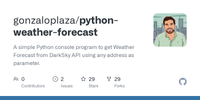 GitHub - gonzaloplaza/python-weather-forecast: A simple Python console program to get Weather Forecast from DarkSky API using any address as parameter.