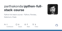 GitHub - parthakonda/python-full-stack-course: Python full stack course - Python, Pandas, Selenium, Flask · GitHub