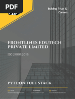 PYTHON FULL STACK SYLLABUS COURSE BROCHURE - Free download as PDF File (.pdf), Text File (.txt) or read online for free. Frontlines Edutech Private Limited provides a Python Full Stack course to help bridge the gap between academia and industry. The course aims to help unemployed youth by training ...