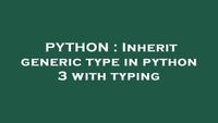May 30, 2024 - Much of the code we write is reusable, ... in Python come into play. Generics allow you to write functions and classes that can operate on any data type while maintaining clear type expectations....
