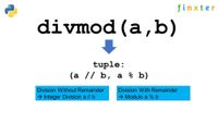 Python Examples Python Compiler ... Python Training ... The divmod() function returns a tuple containing the quotient and the remainder when argument1 (dividend) is divided by argument2 (divisor)....
