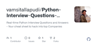 I'm thrilled to share my very own GitHub repository filled with resources to help you excel in Python-based interviews. Whether you're gearing up for technical interviews or simply looking to enhance your Python skills, you'll find a treasure trove of knowledge here.