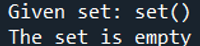 May 31, 2024 - If the length of the set is 0, it means the set is empty. In the below example, you can initialize an empty set called myset. The len() function is applied to myset in the if statement.