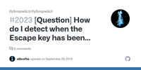 x = input("question")I want to be able to break out of this input if the user simply presses escape. I am not sure if I would need to change the function I use to get the input that allows key presses.