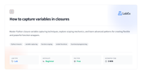 >>> adders = [0,1,2,3] >>> for i in [0,1,2,3]: ... adders[i] = (lambda b: lambda a: b + a)(i) ... >>> adders1 4 >>> adders2 5The scope here is created using a new function (another lambda, for brevity), which binds its argument, and passing the value you want to bind as the argument. In real code, though, you most likely will have an ordinary function instead of the lambda to create the new scope: