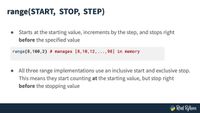 2The analogous statement to 1 in python3.x is print(range(30)[12]) and that works also.