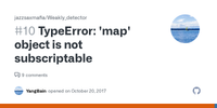 Answer from phihag on Stack OverflowIn Python 3, map returns an iterable object of type map, and not a subscriptible list, which would allow you to write map[i]. To force a list result, write