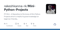 GitHub - rakeshkanna-rk/Mini-Python-Projects: PY Mini . A Repository to file tones of Mini Python Projects which is helpful to grow knowledge on beginner-friendly ideas and projects on Python Programming