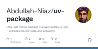uvis an extremely fast Python package installer and resolver, written in Rust, and designed as a drop-in replacement forpipandpip-toolsworkflows.