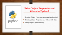 May 31, 2024 - # Using vars() and pprint() functions from pprint import pprint # Class for demonstration class MyClass: def __init__(self): self.prop1 = "value1" self.prop2 = "value2" # Create object obj = MyClass() # Call the vars() on Object obj_vars = vars(obj) # Print the properties pprint(obj_vars) This example yields the below output. # Output: {'prop1': 'value1', 'prop2': 'value2'} We will use the above generic class (MyClass) for all our examples. Alternatively, you can also use the dir() method...