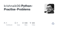 krishnaik06 / Python-Practise-Problems Public · Notifications · You must be signed in to change notification settings · Fork 263 · Star 638 · main · / Copy path · More file actions · More file actions · History · History · 3.22 MB · main · / Top · 3.22 MB ·