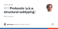 The typing.Protocol class was added to Python 3.8 as a mechanism for "structural subtyping." The power behind this is that it can be used as an implicit base class. That is, any class that has members that match the Protocol's defined members is considered to be a subclass of it for purposes of static type analysis.