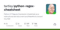 GitHub - tartley/python-regex-cheatsheet: Python 2.7 Regular Expression cheatsheet, as a restructured text document and Makefile to convert it to PDF