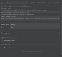 • Separately install debugpy from the command line in your local and remote environments.