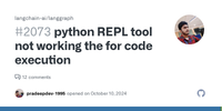 python REPL tool not working the for code execution · Issue #2073 · langchain-ai/langgraph
