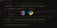August 27, 2017 - In this case, we establish a ‘reverse shell’ on the server and send commands to the client. ... python3 ch2_ssh_server.py 127.0.0.1 22022 username password[*] Bind Success for SSH Server using 127.0.0.1:22022 [*] Listening [*] Incoming TCP Connection from 127.0.0.1:63333 [*] SSH Parameters Negotiation Succeeded [*] Authenticating [*] SSH Client Authenticated <Shell:#> df -hFilesystem Size Used Avail Capacity iused ifree %iused Mounted on/dev/disk1 465Gi 432Gi 32Gi 94% 113391753 8451957 93% /devfs 395Ki 395Ki 0Bi 100% 1367 0 100% /devmap -hosts 0Bi 0Bi 0Bi 100% 0 0 100% /netmap auto_home 0Bi 0Bi 0Bi 100% 0 0 100% /homelocalhost:/onaFBFVIRH7yK-OrLpwGnl 465Gi 465Gi 0Bi 100% 0 0 100% /Volumes/MobileBackups/dev/disk5 953Gi 8.4Gi 945Gi 1% 2193574 247692264 1% /Volumes/Backups<Shell:#> dateWed Aug 23 16:14:42 GST 2017<Shell:#>