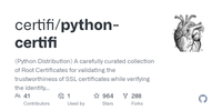 GitHub - certifi/python-certifi: (Python Distribution) A carefully curated collection of Root Certificates for validating the trustworthiness of SSL certificates while verifying the identity of TLS hosts. · GitHub