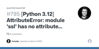[Python 3.12] AttributeError: module 'ssl' has no attribute 'wrap_socket' · Issue #795 · eventlet/eventlet