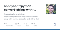 GitHub - bobbyhadz/python-convert-string-with-comma-separator-and-dot-to-float: A repository for an article at https://bobbyhadz.com/blog/python-convert-string-with-comma-separator-and-dot-to-float