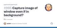 print("done")I searched on internet but the only solution that i found was to get the size and position of the selected window and then take a screenshot with those info so it only gets that window, howewer if there is something covering that window it wont take the screenshot correctly... is it atleast possible?