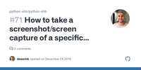 First time posting here, i am very new to python, but i want to make a screenshot of a specific window, instead of all of the screen, this is my current code that makes a screenshot of all of the screen
