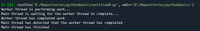 We can use "threads" to do multiple things at once. Our program would create a separate thread that would do nothing but "add 2 and 5" and would then create another thread that would do nothing but "print the words 'Hello world' to the console". These threads can run at the same time, rather than in a predetermined order. The program would be adding and printing at the same time.