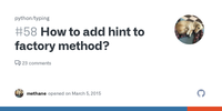 Finally, as also pointed out in the comments, __eq__ should not be hinted this way in the first place. The second argument should be an arbitrary object; you'll return NotImplemented if you don't know how to compare your instance to it. (Who knows, maybe it knows how to compare itself to your instance. If Foo.__eq__(Foo(), Bar()) returns NotImplemented, then Python will try Bar.__eq__(Bar(), Foo()).)