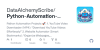 GitHub - DataAlchemyScribe/Python-Automation-Projects: Python Automation Projects ๐: 1. YouTube Video Downloader (MP4): โDownload YouTube Videos Effortlessly!โ 2. Website Automator (Smart Bookmarks): โOrganize Webpages, Boost Productivity!โ 3. File Backup Automator (Daily Backups): "Safeguard your work!"๐ค