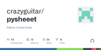 This project was started to bring together useful Python code snippets that make coding faster, easier, and more enjoyable. You can explore all the cheat sheets at Pysheeet.